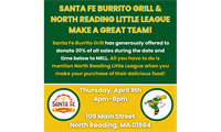 Join us on Thursday, April 9th for a yummy fundraiser at Santa Fe Burrito Grill. Mention NRLL and 30% of the sale will go back to the little leaguers in town.